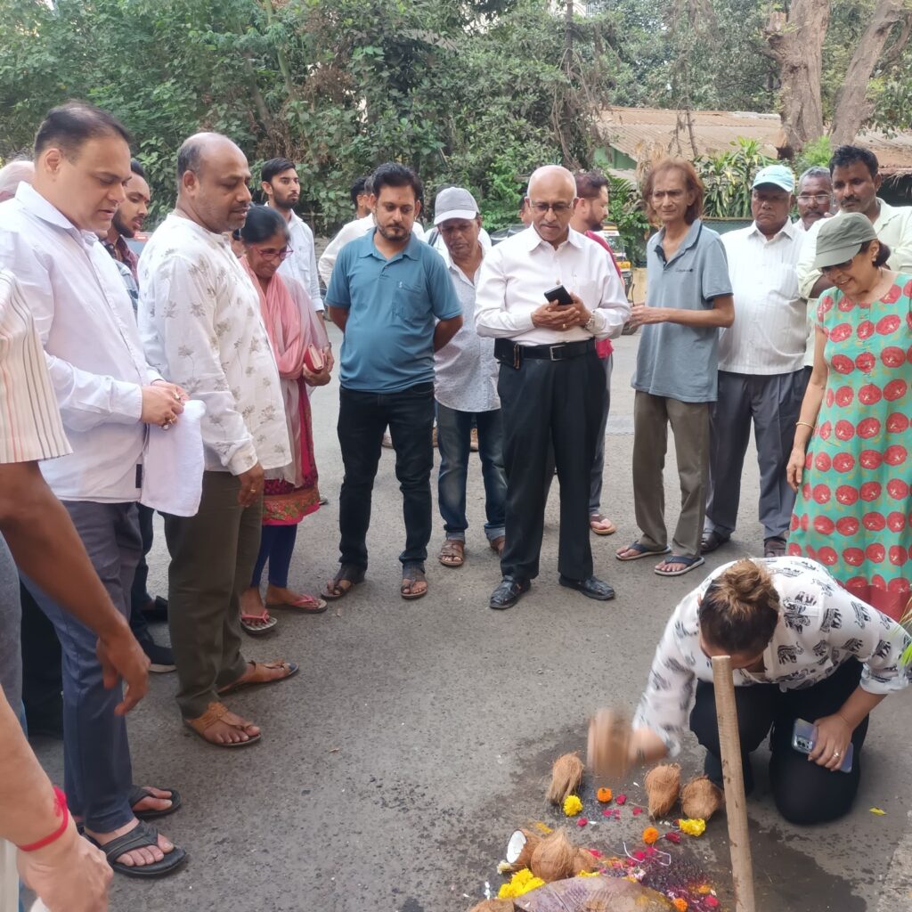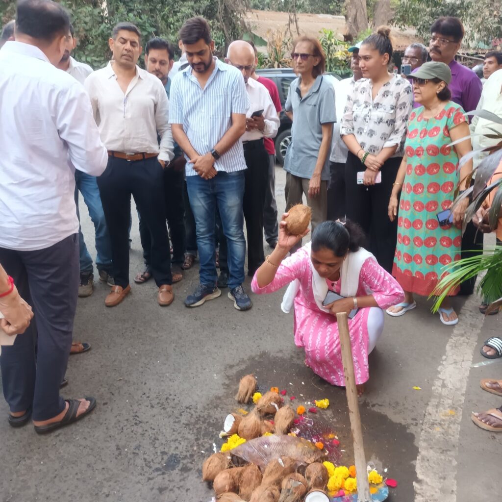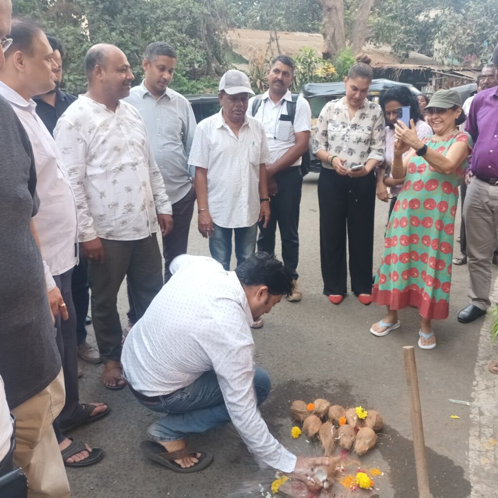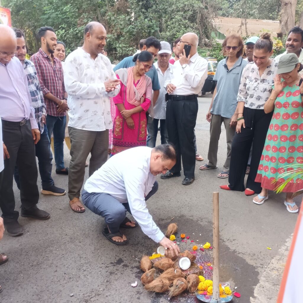 Today, initiated the resurfacing work of Mhatarpada Road near Landmark Building with a traditional coconut-breaking ceremony, marking the start of much-needed infrastructure improvements for the area’s residents. I was joined by BJP Padadhikaris, Karyakartas, and members of the local community.